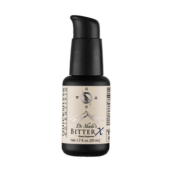 BitterX™ es un tónico amargo para todo el cuerpo y una potente mezcla de cuatro hierbas, que se basa en el inmensamente popular producto Quicksilver Scientific, Dr. Shade's Bitters No. 9. Esta nueva mezcla contiene cuatro ingredientes botánicos digestivos, hepáticos, vesiculares y renales. BitterX™ es una combinación amarga más fuerte que apoya el flujo de bilis necesario para una desintoxicación saludable.*