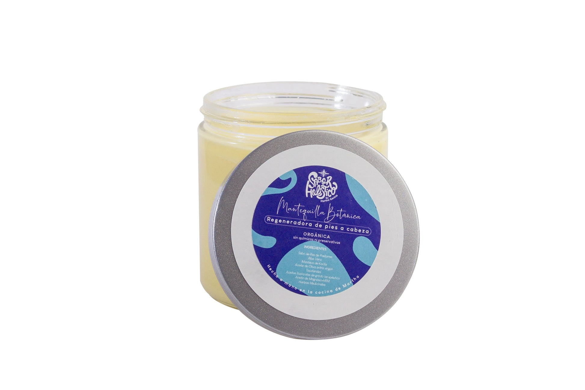 La mantequilla botánica de Sabor Holístico es apta para todo tipo de piel, elaborada a mano con ingredientes naturales sin preservativos, aditivos ni conservantes.Alivia, hidrata y nutre la piel seca y deshidratada, por los cambios de temperatura, las alergias, el embarazo o el envejecimiento natural