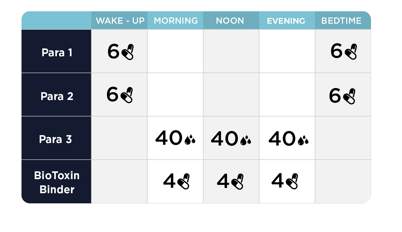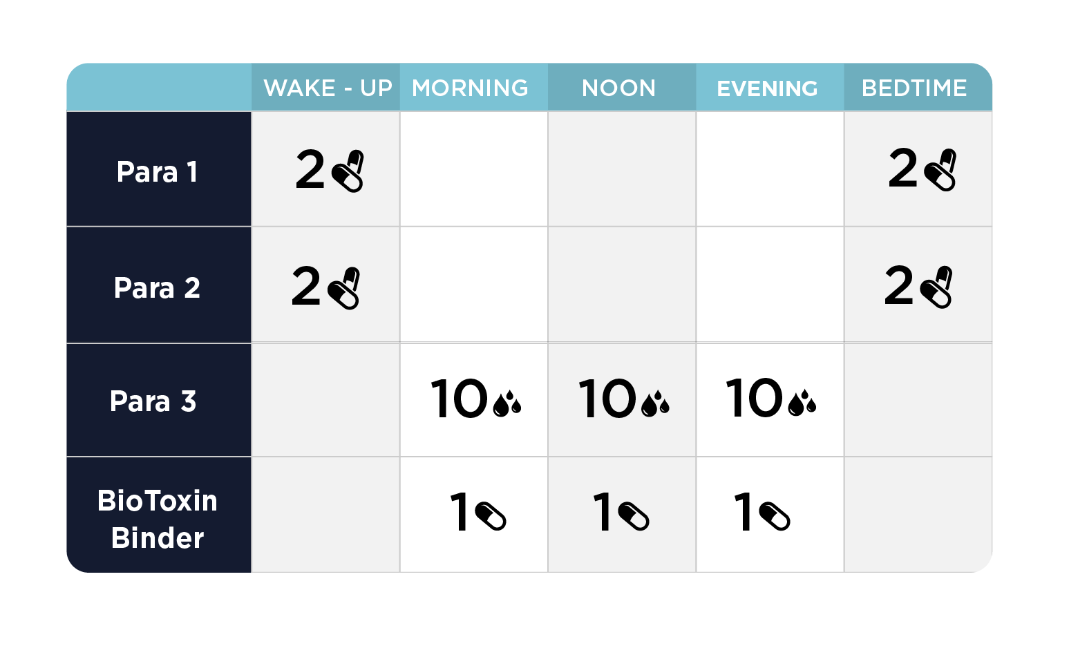 Nota: Dado que el Para Kit ofrece un enfoque más intensivo para apoyar los procesos naturales de desintoxicación del cuerpo, se recomienda que se aumente el apoyo de drenaje antes y durante la introducción de este kit. Por ejemplo, con Advanced TUDCA, Bowel Mover o cualquiera de los otros suplementos en la Fase Uno del Protocolo comprensivo el Paso Uno del Protocolo Fundacional.